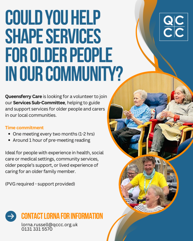 Queensferry Care is a Scottish Charity (No. SC021833) and a Company Limited by Guarantee, registered in Scotland (No. SC210822).